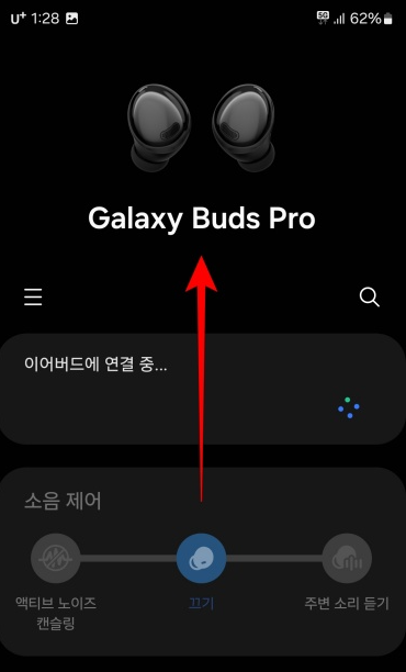 그림처럼 갤럭시 버즈 이어폰 그림이 뜨면서 실행이 되고 위로 스크롤하여 올립니다. 저는 갤럭시 버즈프로를 사용하고 있고 다른 기기를 사용하고 있는 분들이라면 이름이 다르게 표시될 것입니다.